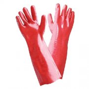 白色绒布罗口红色PVC全浸手套